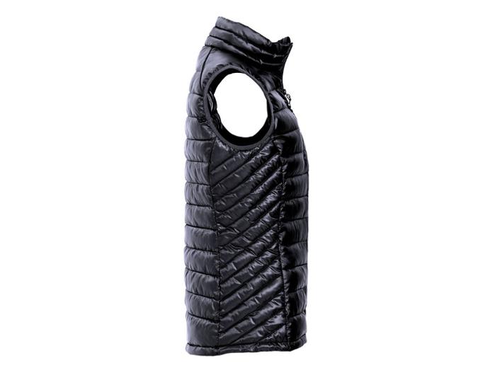 Modern lättvadderad väst. Tre fickor med dragkedjor samt två innerfickor. Hörlursögla på insidan av halsöppningen.