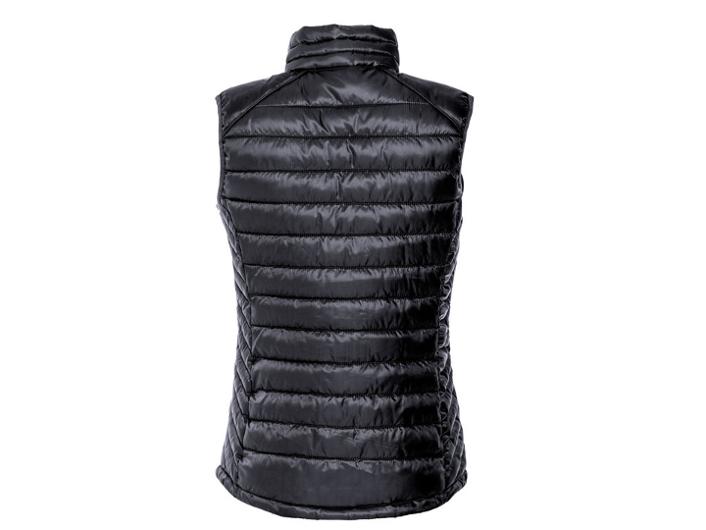 Modern lättvadderad väst. Tre fickor med dragkedjor samt två innerfickor. Hörlursögla på insidan av halsöppningen.