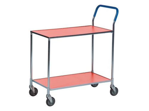 En enkel och klassisk bordsvagn i 2 plan, perfekt på kontoret, lagret eller klassrummet. Plastbeklätt handtag som motverkar kalla händer. Hyllplan av laminat. Levereras med 4 länkhjul, elzinkat stativ och omonterad.