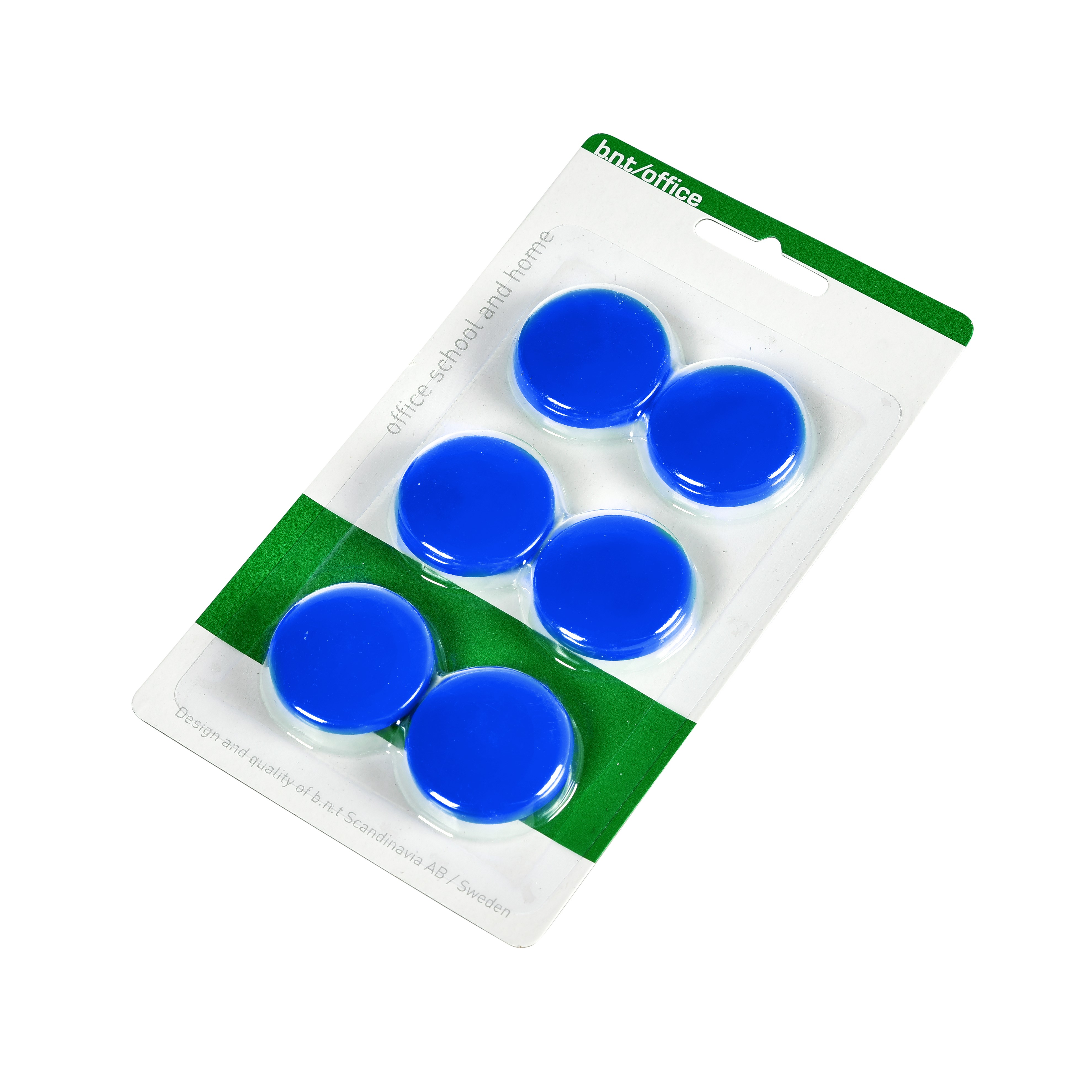 6 st runda blåa 30 mm magneter i blisterförpackning.