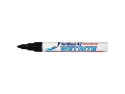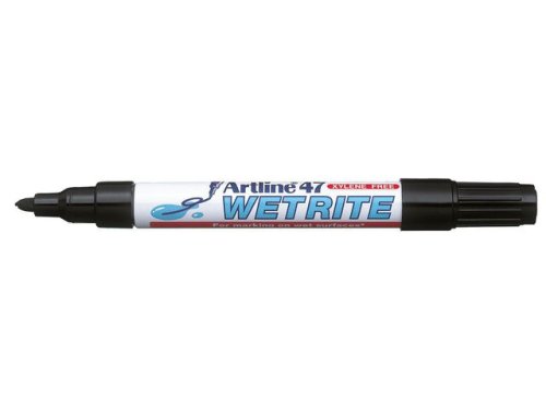 Märkpenna 47 Wetrite för att skriva och märka på våta underlag. Idealisk för märkning på våta icke porösa ytor som metall, plast, gummi, plåt, sträckfilm och frigolit etc. Pennan kan inte användas på vått kakel eller glas. - Permanent märkpenna - 1,5 mm - Rund spets - Snabbtorkande - Alkoholbaserat permanent tusch utan Xylen. - Färg: svart