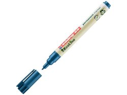 Med den permanenta märkpennan Edding 25 EcoLine kan du skriva på nästan alla ytor, och den består av plast som är tillverkat av 90 % återvunnet material. Den här permanenta Edding 25-märkpennan för finskrift står ut tack vare dess miljömedvetna material. Märkpennan har en kulformad spets med ett ungefärligt linjedrag på 1 mm och tack vare sitt ljusfasta och slitstarka bläck är den idealisk för användning på nästan alla ytor, som t.ex. plast, metall, glas, osv. Dess alkoholbaserade bläck har svag lukt och är fritt från xylen och toluen. Märkpennan Edding 25 är precis som alla andra permanenta märkpennor från EcoLine-sortimentet tillverkad av 90 % återvunnet material. - Permanent bläck - Med huv - Rund spets - Linjebredd: cirka 1 mm - Textfärg: Blå