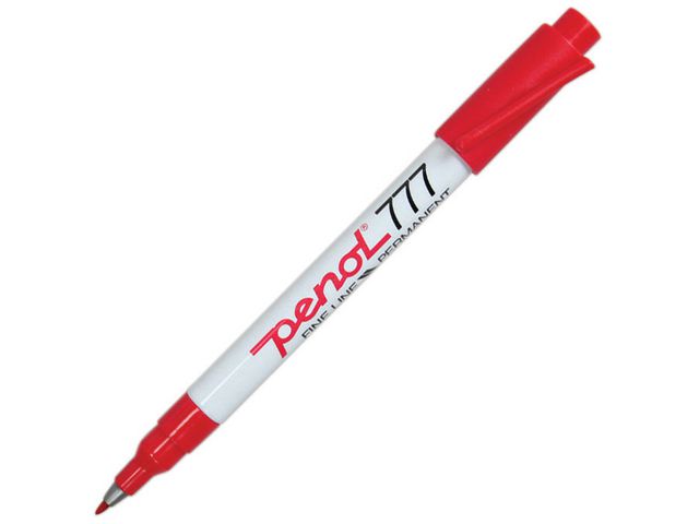 Permanent märkpenna Penol 777 med 1mm spets med permanent bläck. Penol 777 är en märkpenna med 1mm spets. Det permanenta bläcket är alkoholbaserat. Pennan kan användas på underlag så som metall, glas, papper och plast. Märkpennan har en härdad akrylspets och huv som skyddar. - Permanent bläck - Alkoholbaserat bläck - Spetsbredd: 1 mm - Färg: Röd. Obruten fp 20st