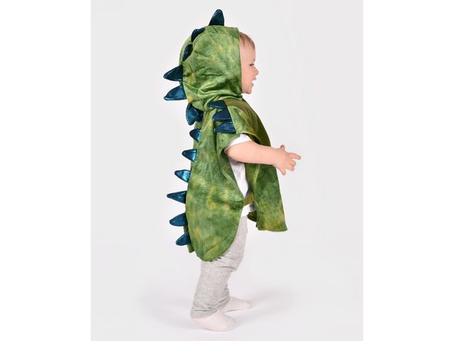 Upptäck den magiska världen av drakar med denna drakcape, komplett med taggar längs axlar, rygg och huva. Den mjuka plyschen med reptilstruktur ger en realistisk känsla av mystik.