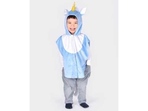 Enhörningscapen förtrollar med sin man och svans gjord av fuskpäls samt de gyllene hornet på huvan.