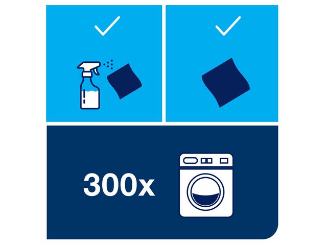 Använd den om och om igen ? mikrofiberduken är hållbar och kan tvättas upp till 300 gånger. När den används med vatten tar den bort 99,9 % av alla mikroorganismer, inklusive C. difficile för maximal hygien. (Följ tillverkarens instruktioner om desinfektionsmedel krävs.)