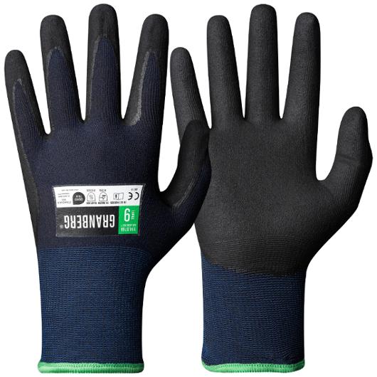 Montagehandskar Powerfit by Granberg med extra tunn nylonväv (18 gauge) och sandig nitrilskumsbeläggning. Med ett enastående torr-, våt- och oljegrepp och en utmärkt slitstyrka, samtidigt som du får den optimala fingerkänslan.