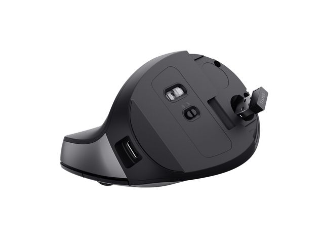 Trådlös uppladdningsbar mus med digital display och ergonomisk vertikal design för optimal komfort