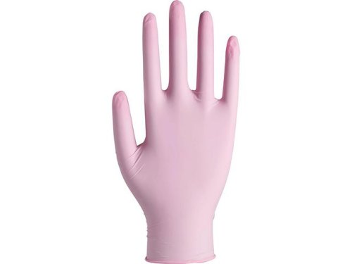 Handsken i Nitril är anpassad för att klara uppgifter i miljöer där det finns risk att komma i kontakt med kroppsvätskor eller kemikalier. Handsken är utformad för bästa grepp och har textuerade fingrar som ger bättre grepp än släta handskar. Handsken är puderfri. Handsken är livsmedelsgodkänd vilket innebär att det är godkänt att hantera mat och livsmedel med handskarna. - Material: Nitril - Livsmedelsgodkänd - Puderfri - Textuerade fingrar för bättre grepp - Storlek: Small - Färg: Rosa - AQL 1,5