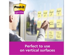 Super Sticky Notes har dubbelt så stark häftförmåga som Post-it® Original Notes därför passar de till vertikala och ojämna ytor så att du kan fästa dem där du behöver dem.