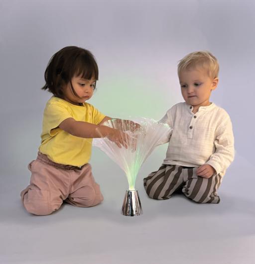 En fascinerande optisk fiberlampa som sprider färgglada ljuseffekter och skapar en lugnande atmosfär. Perfekt för att stimulera sinnena, väcka nyfikenhet och ge en visuell upplevelse i både lek- och lärmiljöer.
