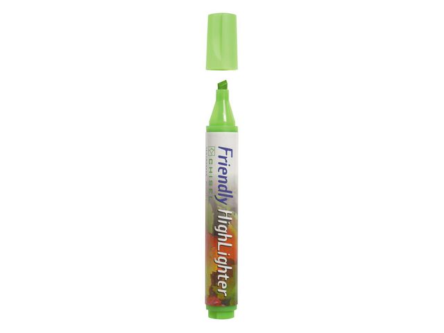 Överstrykningspennan Friendly® med rund pennkropp och skuren spets har ett vattenbaserat bläck som är idealiskt för allmän användning på kontor och i hemmet. Överstrykningspennan Friendly® med rund pennkropp är ett lättanvänt tillskott till kontorsmaterialet i hemmet eller på kontoret. Pennan är intelligent utformad och det vattenbaserade bläcket är ett riskfritt val för miljömedvetna användare. Nu kan du enkelt markera dina dokument med den skurna spetsen. Överstrykningspennan har ett stabilt lock som inte lossnar och skyddar spetsen från att torka. - Med huv - Snedskuren spets - Linjebredd: 1?4 mm - Textfärg: Grön - Färg pennkropp: Blandade - Pennkropp av vaxat returpapper - Pennkroppen är tillverkad av 80% återvunnet material