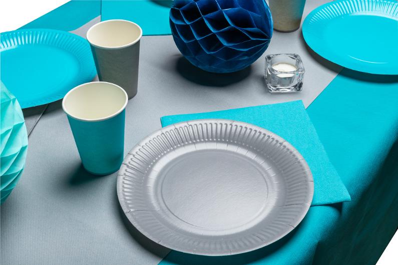 15 Pappersmuggar, 20 cl Varumärket Pro Nappe erbjuder dig trevliga produkter som dukar, placemats, servetter, tallrikar och muggar i matchande ljusa och trendiga färger för att ta emot gäster på bästa sätt. Dessa muggar är tillverkade av höghållfast kartong utan plasttillsatser och vattentäta tack vare innovativ pappersteknik, i enlighet med europeiska bestämmelser om engångsserviser. De är därför helt återvinningsbara, precis som papper, men också FSC-C002321®-certifierade, från ansvarsfull skogsförvaltning. Dessa pappersmuggar tillverkas också i Europa. Muggarna är styva och tål både kalla och varma drycker. De uppfyller bestämmelserna om kontakt med livsmedel. De är inte lämpliga för användning i mikrovågsugn. Denna produkt med sina ljusa och trendiga färger kommer att förhöja din bordsdekoration vid alla tillfällen: picknick, födelsedagsfester, grillfester, bröllop... Färgerna matchar pappers- och non-woven-dukarna samt servetterna i våra sortiment. Förpackningen innehåller 15 pappersmuggar à 20 cl, i plastfilm.