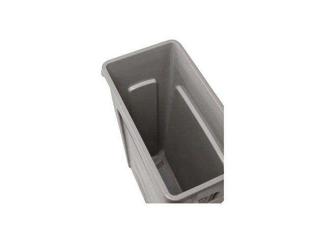 Rubbermaid Slim Jim-papperskorgen har smala mått som tar upp minimalt med utrymme på kontoret. Den här papperskorgen är tillverkad av hållbar plast som är lätt att rengöra och kan användas för vanligt avfall och återvinning. Inbyggda ventilationskanaler underlättar bytet av soppåsar och förenklar användningen av den här papperskorgen. Den har en stor kapacitet på 87 liter, vilket innebär att den inte behöver tömmas så ofta. Den effektiva smala designen gör att papperskorgen får plats i trånga utrymmen och passar bra på kontoret, i hemmet, i evenemangsutrymmen eller skolan. Rubbermaid Slim Jim-papperskorgen har formgjutna handtag och greppytor på basen för att göra lyft extremt enkla och bekväma. Papperskorgen levereras utan lock för att förenkla avfallshanteringen. - Slim Jim-papperskorg - Tålig plast som är lätt att rengöra - Inbyggda ventilationskanaler underlättar bytet av soppåsar - Stor kapacitet minskar antalet gånger den behöver tömmas - Smal design som smälter in i alla miljöer - Formgjutna handtag för enkel lyftning - Utan lock för enkel avfallshantering - Färg: Grå - Kapacitet: 87 liter