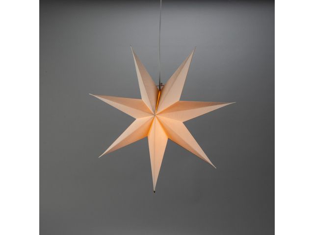 Hängande pappersstjärna vit. Sladdställ med 5 meter anslutningssladd ingår, E14-sockel. Sladdströmbrytare. Diameter 60 cm.