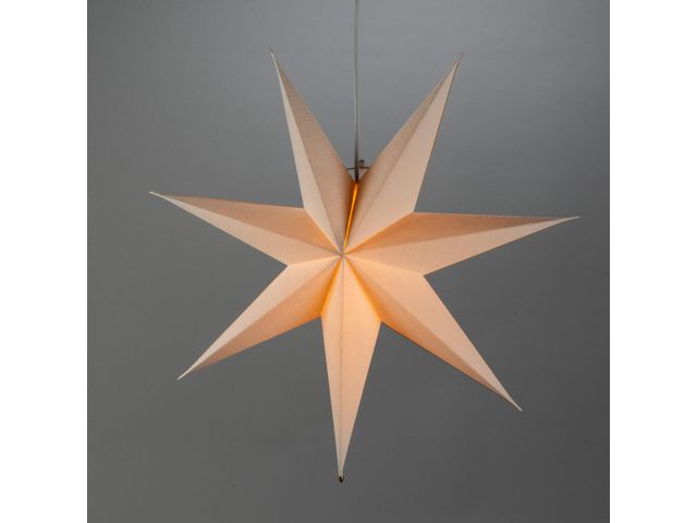 Hängande pappersstjärna vit. Sladdställ med 5 meter anslutningssladd ingår, E14-sockel. Sladdströmbrytare. Diameter 78 cm.