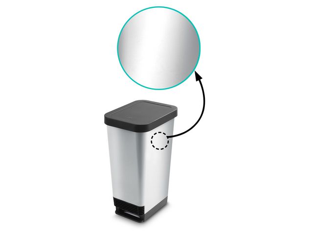 Pedalhinken är tillverkad av återvinningsbar polypropylen och har en tätslutande försegling som innesluter oönskad doft. Hinken öppnas enkelt med en bred fotpedal och greppsäkra gummifötter säkerställer god kontakt med underlaget.