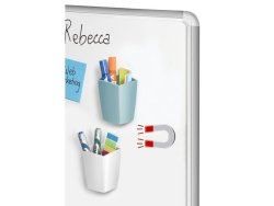 Den magnetiska pennkoppen CEP Gloss 530 MG kan fästas stadigt på whiteboardtavlor så att du kan ha märkpennor och andra whiteboard-tillbehör lättillgängliga under möten och presentationer. Den här magnetiska koppen är både robust och slitstark, och tillverkad av slagtålig och återvinningsbar polystyren. Den rymmer upp till 10 whiteboardpennor, som går att organisera snyggt i 2 olika fack. Den här magnetiska koppen har en elegant design, en snygg vit färg och högglansig yta som passar till alla möjliga kontorsmiljöer. Den passar fint med alla skrivbordstillbehör från CEP:s eleganta och moderna Gloss-sortiment för ett snyggt och enhetligt utseende.