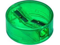 Högkvalitativ pennvässare för både vanliga och tjocka pennor. Handmodell av styrenplast med behållare och 2 hål, ett för vanliga pennor och ett för jumbopennor, trekantiga, runda eller sexkantiga. Pennvässarens hål kan låsas för att undvika att avfallet faller ut. För max 10mm tjocka pennor. - Dubbel pennvässare - Passar vanliga pennor och jumbopennor - Material: Styrenplast - Mått (ØxH): 4 x 2 cm - Färg: Sorterade