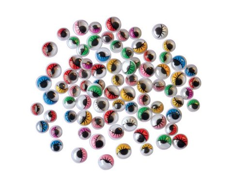 Ögon med färgade ögonlock, svartvita ögon med rörliga pupiller i fyra olika storlekar.