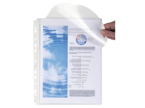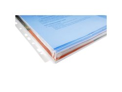 Med öppning upptill. Kan expandera för att rymma upp till 250 ark. Katalogfickan har 11 hål med förstärkt hålkant. Tillverkad av 200 µm PP-film.