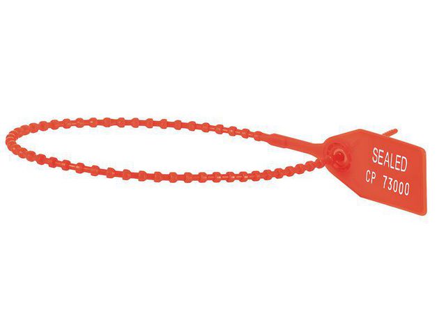 Indikativa plomber (genomdragsplomber) med ett tunt plastband som lätt dras sönder vid behov. Kontrolldatum, giltighetsdatum, utgångsdatum och annan viktig information går att skriva dit med permanenta märkpennor. Perfekta för tillämpningar som kräver en måttlig skyddsnivå (försegling av första hjälpen-lådor, automatiska hjärtstartare, brandsläckare, dörrar etc.). - Färg: Röd - Storlek flaggan: 22,5x33 mm - Längd: 279 mm - Bandets diameter: 2,2 mm - Användbar längd: 240 mm