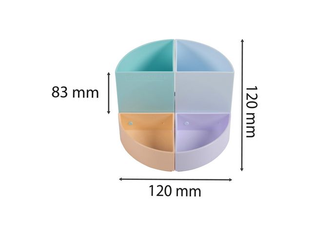 Exacompta Aquarel, 4 delar som kan sammanfogas för att skapa ett runt prylställ med två olika höjder: två höga sektioner för att förvara föremål som pennor, saxar, linjaler och två lägre delar för små föremål som gem, häftstift, sudd.