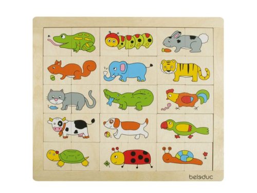 I detta roliga pussel kan fantasin flöda fritt, kombinera djuren och skapa dina egna fantasidjur med roliga namn. Spelet ger garanterat upphov till många skratt. Kombinera djuren hur du vill, detta pussel har bitar som passar överallt. Pussla ihop färger som matchar eller skapa roliga färgkombinationer på de olika djuren. Pusslet passar små barn och bitarna är lätta att greppa. Från 24 månader.