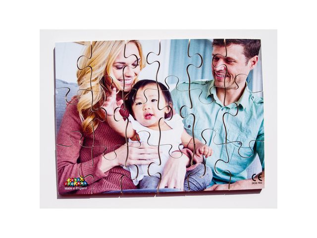 Pedagogiska träpussel med motiv av 8 olika familjer.