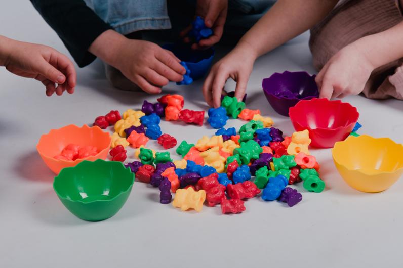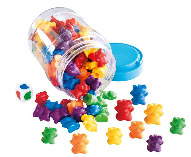 Set med 90 färgglada björnar och en tärning som gör sortering och räkning extra roligt. Perfekt för att öva färger, klassificering och matematiska färdigheter på ett lekfullt sätt. Ett pedagogiskt material som stimulerar både fantasi och inlärning.