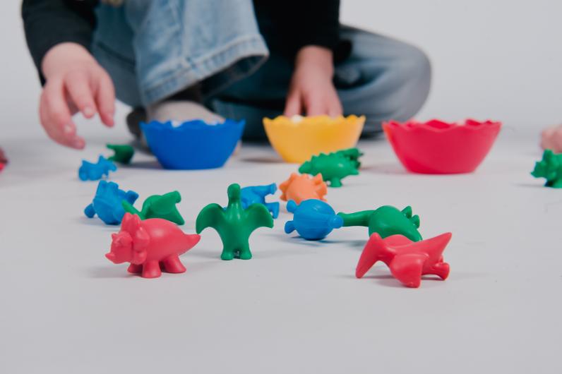 Lekfull färgträning med dinosaurier och tärning!