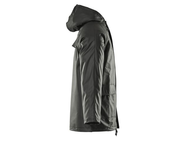 Vind- och vattentät jacka tillverkad av material med svetsade sömmar som förhindrar att regnet tränger igenom. Huven kan justeras med en snodd och jackan har en dragkedja med en vindslå med tryckknappar för extra skydd. Ventilation på ryggen förhindrar överhettning och justering vid handlederna håller regnet ute. Denna regnjacka är designad för att hålla dig torr och bekväm även i det blötaste väder.
