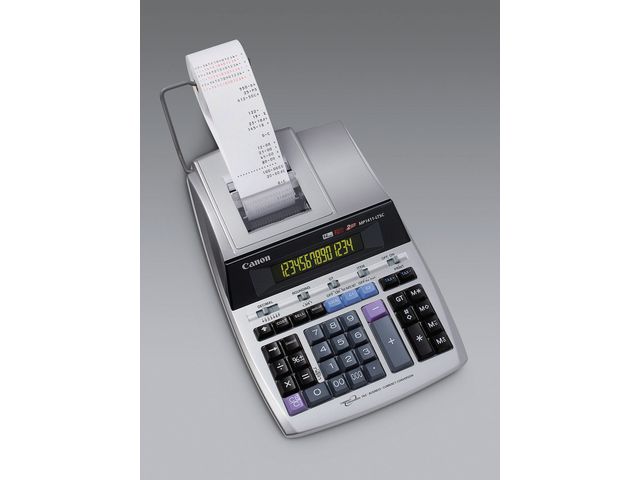 Den är utrustad med färgband för utskrift i två färger, en stor tvåfärgsdisplay och ett snyggt silverfärgat metallhölje.