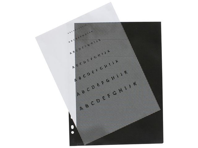 Svart säkerhetsficka. Sekretessficka med framsida som gör det svårt att läsa igenom. Öppning längs hålkanten Tillverkad av PP. Svart baksida 0,35my, Framsida 0,17my - Färg: Svart - Storlek: A4 - Material: PP