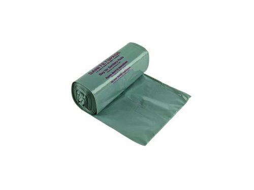 Sanitetspåse på rulle i mörk, gråinfärgad LLD-polyeten för diskret hantering.