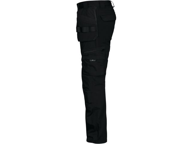 Service-/hantverksbyxa med komfort och flexibilitet i fokus. Lämplig för hantverkare, servicepersonal, installation och underhåll, bygg och anläggning. Modern och lättare service- och hantverksbyxa för dig som kräver mer än bara funktion, komfort och rörlighet. Den inbyggda Comfort-stretchen i rygg och knän ger optimal rörelsefrihet under hela arbetsdagen. Två spikfickor med mejselfickor och verktygshankar kan enkelt stoppas undan när de inte används. Förstärkta knäfickor är anpassade för knäskydd AK01, och tumstocksfickan är utrustad med både knivhållare och pennficka. Justerbar vidd i bensluten med smidig dragsko för en perfekt passform. - Varumärke: TEXSTAR - Material: 65 % polyester, 35 % bomull - Vikt: 185 g/m2 - Storlekar: W28-W46, L30-L36 - Passform: herr - Färg: svart