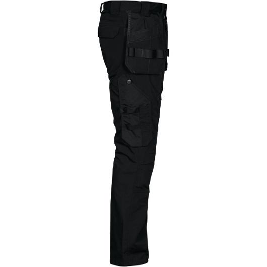 Service-/hantverksbyxa med komfort och flexibilitet i fokus. Lämplig för hantverkare, servicepersonal, installation och underhåll, bygg och anläggning. Modern och lättare service- och hantverksbyxa för dig som kräver mer än bara funktion, komfort och rörlighet. Den inbyggda Comfort-stretchen i rygg och knän ger optimal rörelsefrihet under hela arbetsdagen. Två spikfickor med mejselfickor och verktygshankar kan enkelt stoppas undan när de inte används. Förstärkta knäfickor är anpassade för knäskydd AK01, och tumstocksfickan är utrustad med både knivhållare och pennficka. Justerbar vidd i bensluten med smidig dragsko för en perfekt passform. - Varumärke: TEXSTAR - Material: 65 % polyester, 35 % bomull - Vikt: 185 g/m2 - Storlekar: W28-W46, L30-L36 - Passform: herr - Färg: svart