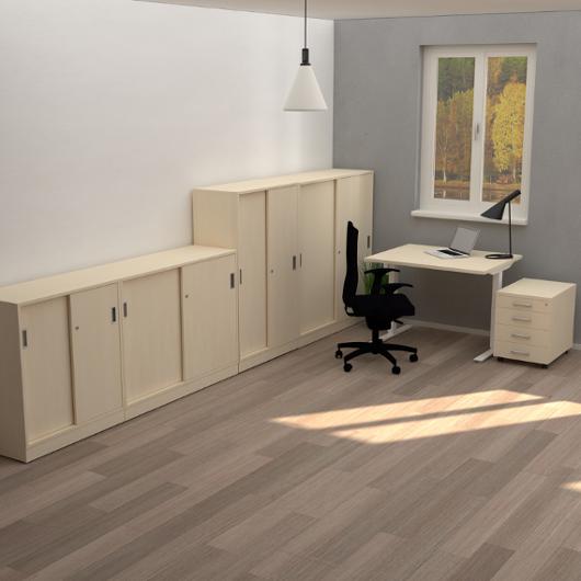 Produkten uppfyller Möbelfaktas kravspecifikation gällande kvalitet, miljö och socialt ansvar. Skjutdörrskåp i flera bredder och höjder som gör att ni kan möblera ert kontor som ni behöver det. Dörrarna är låsbara. Skåpet är monterat vid leverans och är bara att avemballera och ställa på plats. Skåp med skjutdörrar är platsbesparande och går att du kan organisera dina pärmar på ett fantastiskt bra sätt. Ryggen är i 18 mm och i samma färg som stommen så den fungerar alldeles utmärkt som en rumsavdelare, en praktisk finess.Skåpen är tillverkade av stryktåligt och lättskött laminat och är färgbeständigt år efter år. Låsen har två styck unika nycklar. Maxdjup insatser är 316 mm. 1200x400x1320 mm