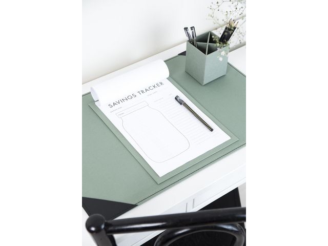 Skrivbordsunderlägg av återvunnen fiberboard.