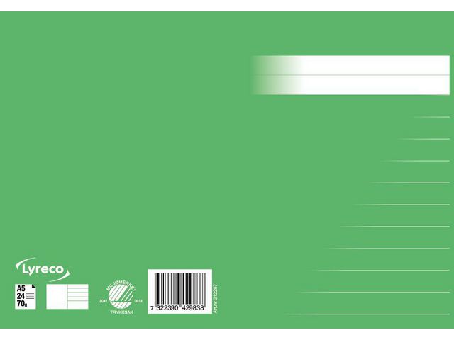 Ett svanenmärkt skrivhäfte med varannan sida blank och varannan sida linjerad med 14,5mm linjeavstånd. I A5 format.