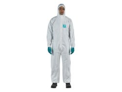 Skyddsoverall Alphatec 2000 ger ett bra skydd och har extra hållbara sömmar med barriär mot vätskor och partiklar. Korttidsoverallen är till för engångsbruk. Dräkt som designats för att ge ett extraordinärt bra skydd mot vätskor och partiklar. Perfekt för en lång rad olika branscher och användningsområden. Har en 3-delad huva för optimal passform med helmask, ett tvåvägs-blixtlås med stormklaff och resår runt handled, midja, ankel, huva samt tumme. Dräkten är tillverkad i PE-laminerat material och har sömmar med överlägsen styrka som fungerar som en barriär mot vätskor och partiklar. Lämplig för farmaceutisk användning, användning inom lantbruk och i renrum, brottsplatsundersökningar, veterinärarbete eller vid sprutmålning. Dräkten har Microgard 2000-standard som stämmer överens med följande europeiska standarder: Typ 5 EN ISO 13982-1: Skyddskläder mot fasta partiklar. Typ 6 EN 13034: Skyddskläder mot kemikalier i vätskeform. EN 14126: Skyddskläder mot smittsamma ämnen. EN 1073-2, klass 2: Skyddskläder mot radioaktiva föroreningar (radioaktiva partiklar). EN 1149-5: Skyddskläder med elektrostatiska egenskaper (dräkten är antistatisk). DIN 32781: Skyddskläder mot pesticider. - CE- certifierad - Godkänd enligt: EN 13034, EN 1073-2, EN 13982-1, EN 14126, DIN 32781, EN 1149 - Klassificering: Kategori III - Typ av förslutning: Dragkedja - Engångsbruk: Ja - Material: Polyeten - Typ av söm: Bunden - Vikt: 11,6 kg - Skyddsnivå: Ty5, Typ 6 - Färg: Vit - Storlek: XXL