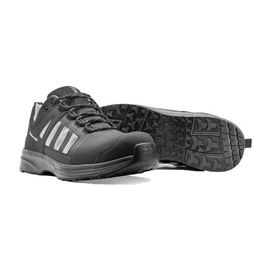 Stream är en lätt och ventilerad skyddssko med sportig känsla, framtagen för arbetspass där både säkerhet och hög komfort är avgörande. Sulan i PU ger effektiv dämpning, medan yttersulan i gummi har ett specialutvecklat mönster som ger starkt grepp. Ovandelen består av lätt textil och ett stort TPU-förstärkt polyamidnät som maximerar ventilationen. Skon har foder av 100 procent återvunnen polyester och en OrthoLite®-innersula tillverkad av återvunnet material som ger stöd och dämpning. Sulplatta och gelänk bidrar till ökad stabilitet och vridstyvhet. Utrustad med glasfibertåhätta, återvunnet mjukt spiktrampskydd och ESD-funktion enligt EN IEC 61340-4-3:2018.