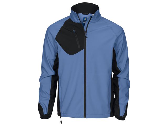 Softshelljacka med bra andningsförmåga. Två sid¿ckor med dragkedja. Bröst¿cka med dragkedja och invändigt fäste för ID-kortshållare. Två inner¿ckor. Hel dragkedja framtill med invändig vindslå för att förhindra vinddrag, samt hakskydd för att förhindra skav mot hakan. Reglerbar med snodd i nederkant.