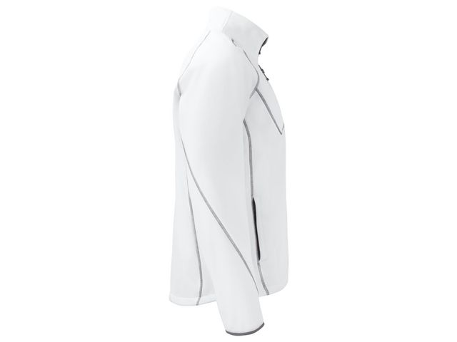 Softshelljacka med bra andningsförmåga. Två sid¿ckor med dragkedja. Bröst¿cka med dragkedja och invändigt fäste för ID-kortshållare. Två inner¿ckor. Hel dragkedja framtill med invändig vindslå för att förhindra vinddrag, samt hakskydd för att förhindra skav mot hakan. Reglerbar med snodd i nederkant.