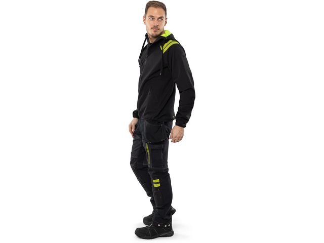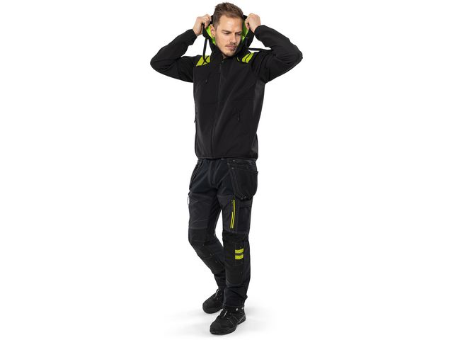 Softshelljacka i vindtätt och vattenavvisande stretchmaterial med andasfunktion. Lätt och bekväm arbetsjacka med förhöjd synbarhet av delvis återvunnet material.