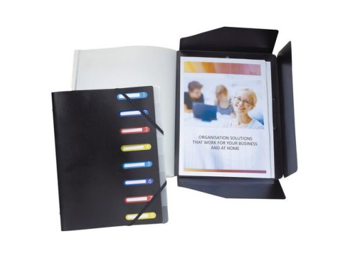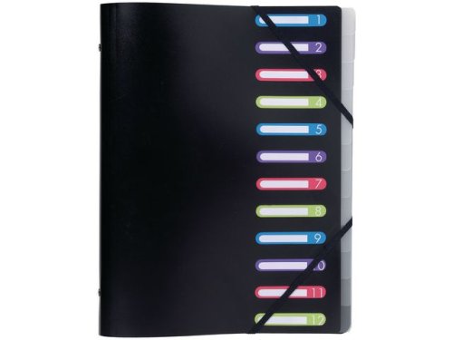 Organisera och säkra upp till 400 dokument med den här snygga mappen med flera fack från Exacompta. Den här sorteringsmappen från Exacompta är det perfekta sättet att hålla pappersarbete säkert och organiserat med en kapacitet på upp till 400 ark och praktiska, färgkodade märkningsplatser som är inbyggda i den främre luckan. Oavsett om det gäller läxor eller en stor kund på arbetet, är det här arkivets rejäla konstruktion av polypropylen och elastiska förslutningar perfekt. - Märkta fack för snabb identifiering - Elastiska band i hörnen för att säkra dokument - Antal fack: 12 - A4-format - Förskurna flikar - Konstruktion av polypropylen - Mått: 320 x 240 mm