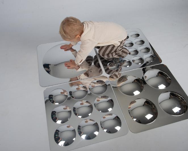 Ge barnen en spännande upplevelse med vår spegel med fyra konvexa kupoler som skapar unika, förvrängda reflektioner. Den väcker nyfikenhet och fantasi, perfekt för förskolor, klassrum och kreativa lekrum.