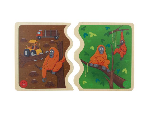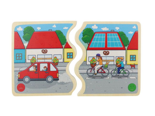 Det tvådelade pusslet lär dig vad som hör ihop och vilken situation som är bättre för vår planet. Du får redan i tidig ålder lära dig hur du kan skydda jorden. Samtidigt utvecklas språk- och motoriska färdigheter.