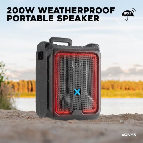 SPLASH300 är en väderbeständig utomhushögtalare. Allt-i-ett-ljudsystem speciellt designat för fester, skolgårdar, föreningar, träningspass och PA-ändamål. Bärbar och trådlös, du kan ta med dig detta mobila ljudsytem var som helst och spela musik från dess ingångsalternativ som USB eller en extern enhet via AUX. BT 5.0 trådlös musikströmning låter dig ansluta och strömma ljud från alla dina favoritenheter som smartphones, surfplattor, bärbara datorer, etc.