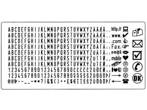 Stämpel med inbyggd färgdyna. 3 mm höga typer ger plats för upp till 5 rader text. Pincett medföljer. Dokumentäkta stämpelfärg ISO 14145-2. Extra dynkassett: Dynkassett Colop E/30 Svart